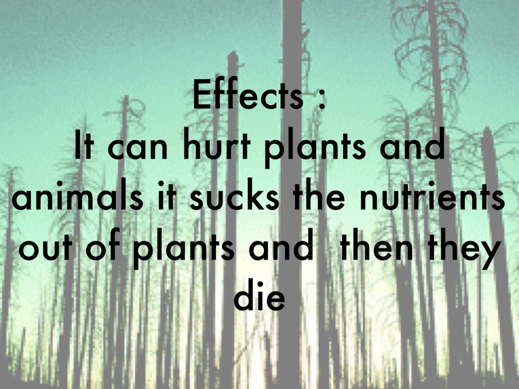 It can hurt plants and animals it sucks the nutrients out of plants and then they die