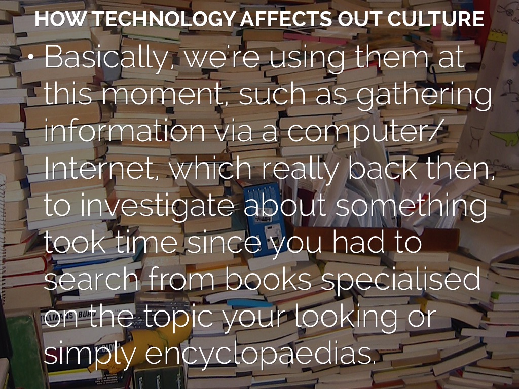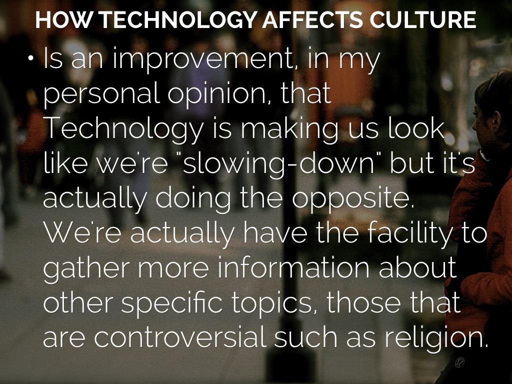 Is an improvement, in my personal opinion, that Technology is making us look like we're "slowing-down" but it's actually doing the opposite. We're actually have the facility to gather more information about other specific topics, those that are controversial such as religion.