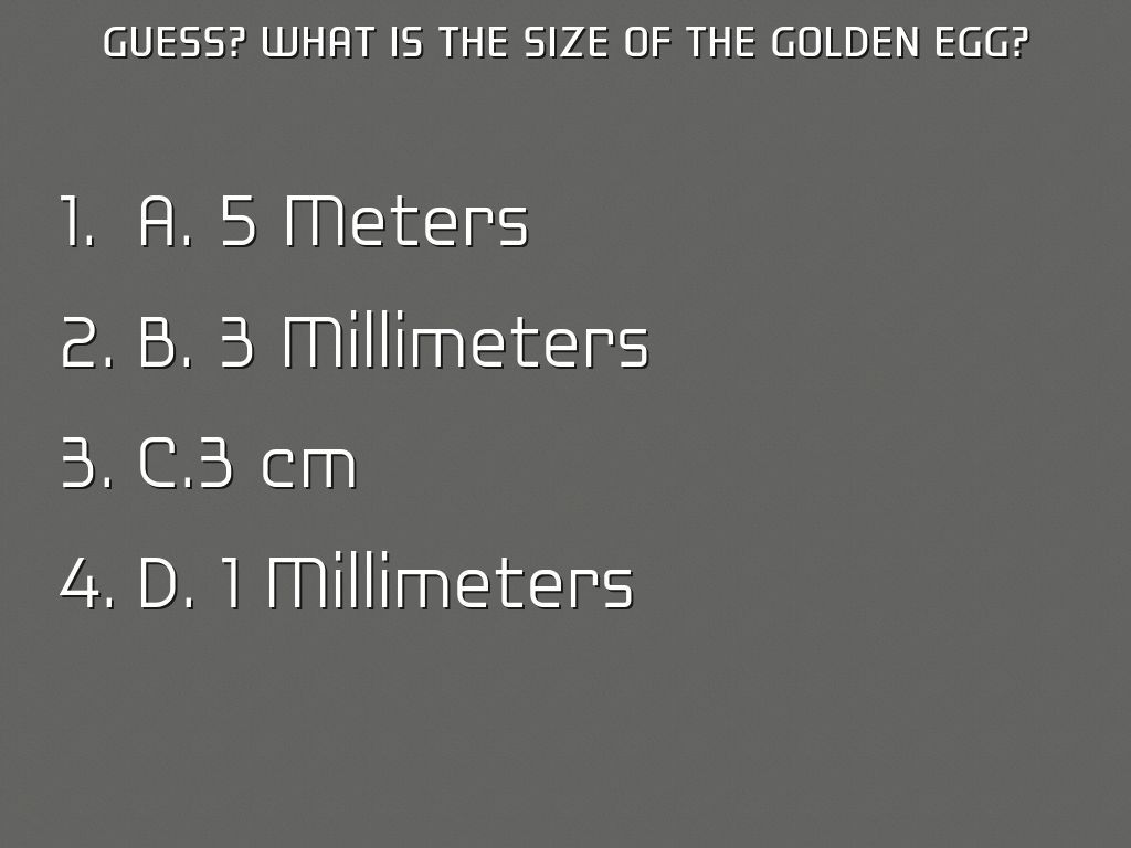 GUESS? WHAT IS THE SIZE OF THE GOLDEN EGG?