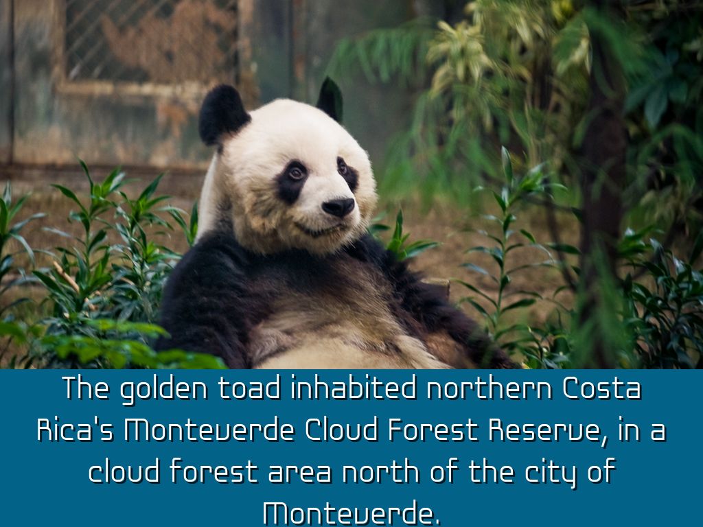 The golden toad inhabited northern Costa Rica's Monteverde Cloud Forest Reserve, in a cloud forest area north of the city of Monteverde.