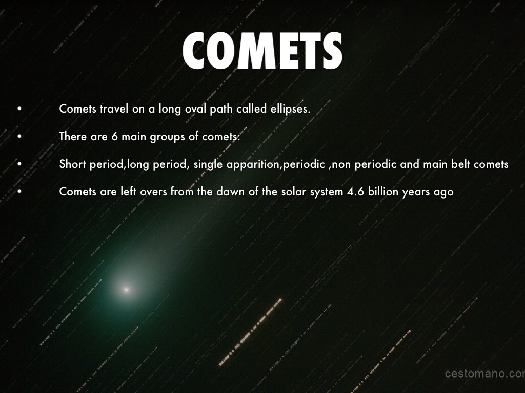 Comets are left overs from the dawn of the solar system 4.6 billion years ago