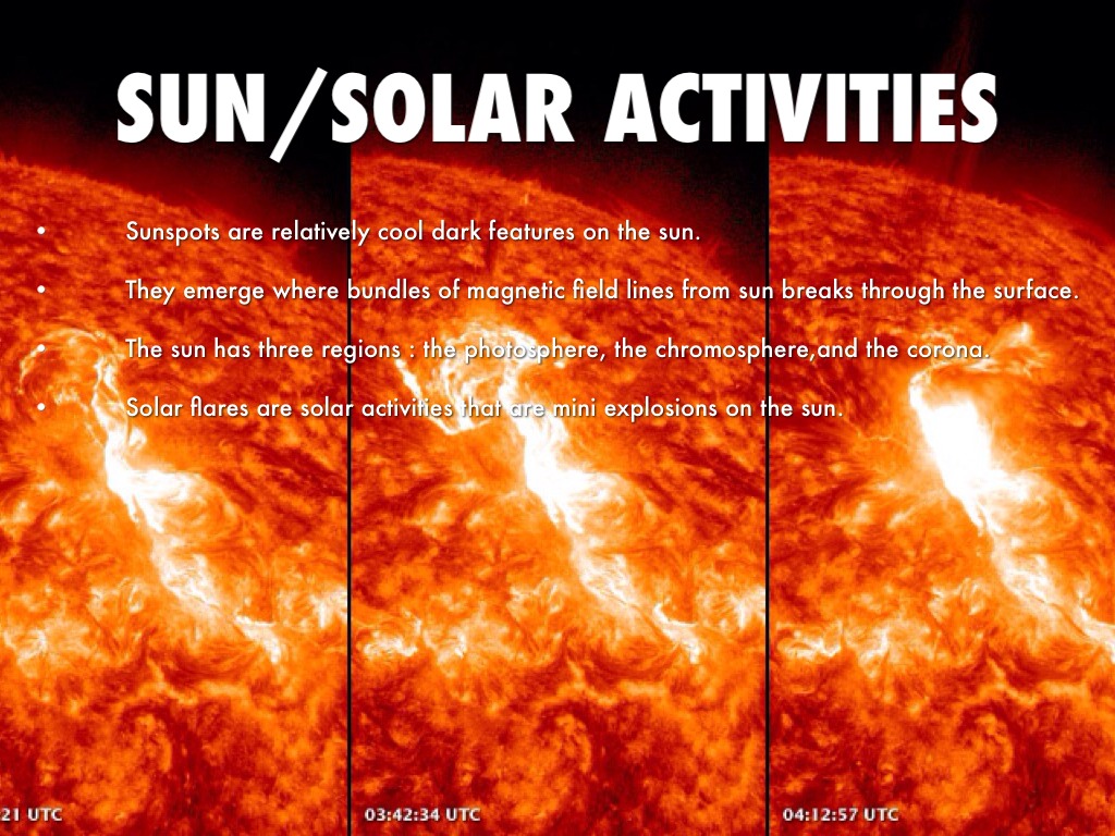 The sun has three regions : the photosphere, the chromosphere,and the corona.