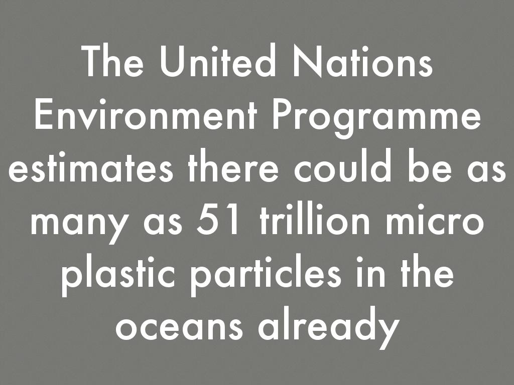 The United Nations Environment Programme estimates there could be as many as 51 trillion micro plastic particles in the oceans already