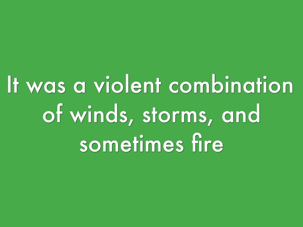 It was a violent combination of winds, storms, and sometimes fire