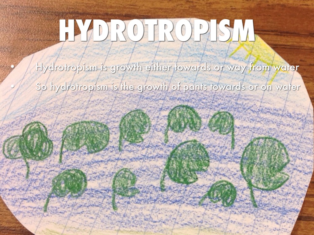 • So hydrotropism is the growth of pants towards or on water