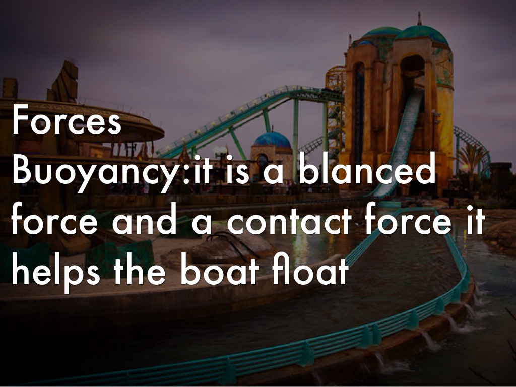 Buoyancy:it is a blanced force and a contact force it helps the boat float