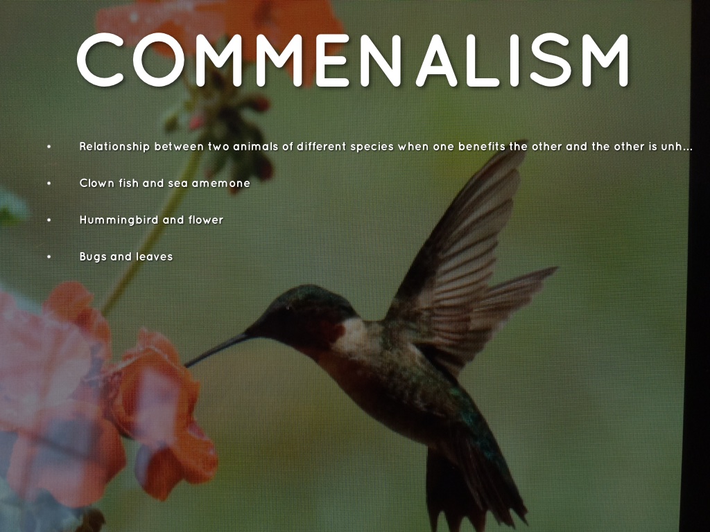 Relationship between two animals of different species when one benefits the other and the other is unharmed