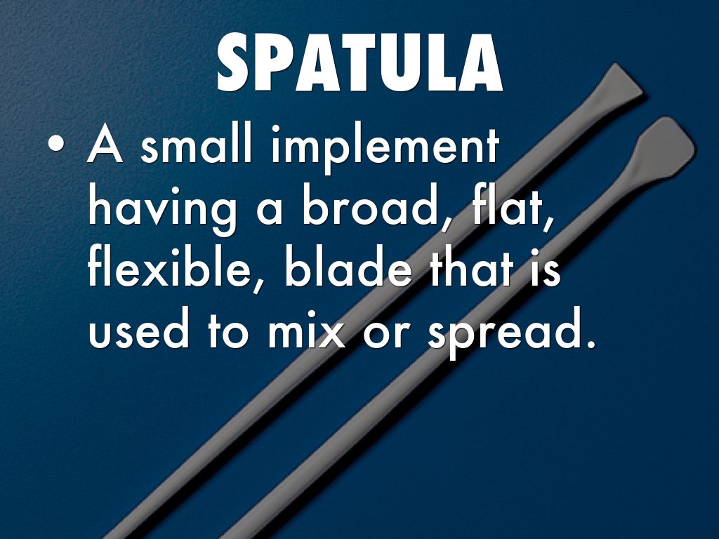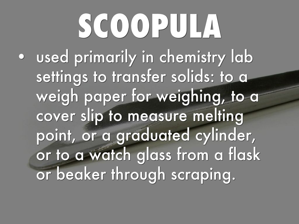 used primarily in chemistry lab settings to transfer solids: to a weigh paper for weighing, to a cover slip to measure melting point, or a graduated cylinder, or to a watch glass from a flask or beaker through scraping.