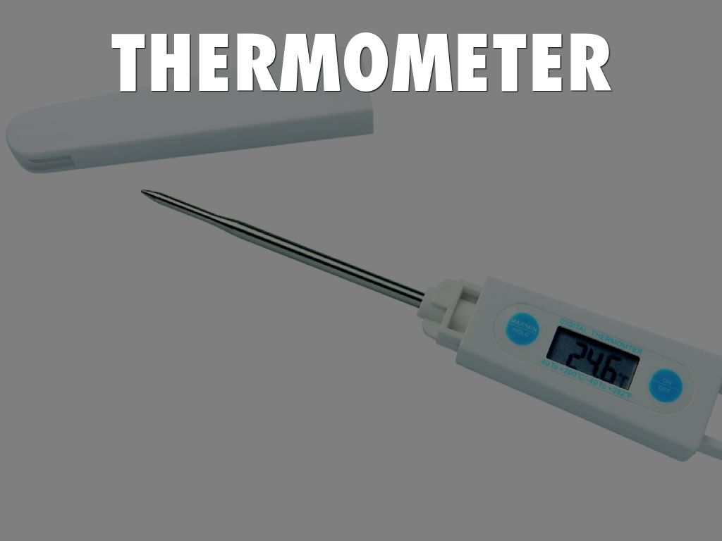 an instrument for measuring and indicating temperature, typically one consisting of a narrow, hermetically sealed glass tube marked with graduations and having at one end a bulb containing mercury or alcohol that expands and contracts in the tube with heating and cooling.
