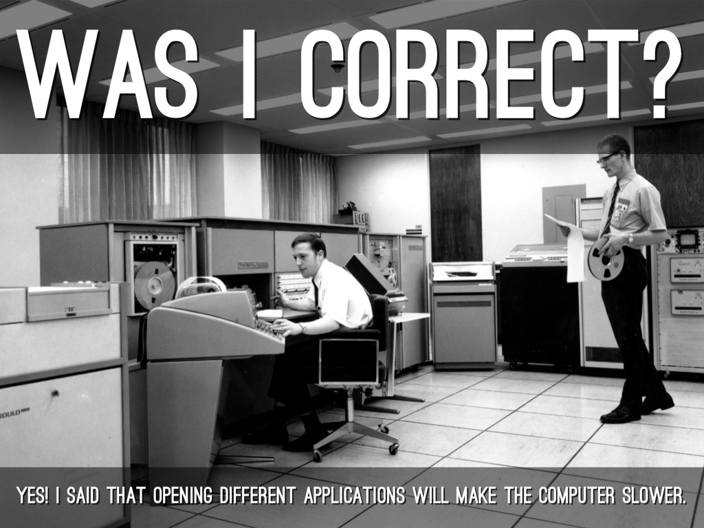 YES! I SAID THAT OPENING DIFFERENT APPLICATIONS WILL MAKE THE COMPUTER SLOWER.