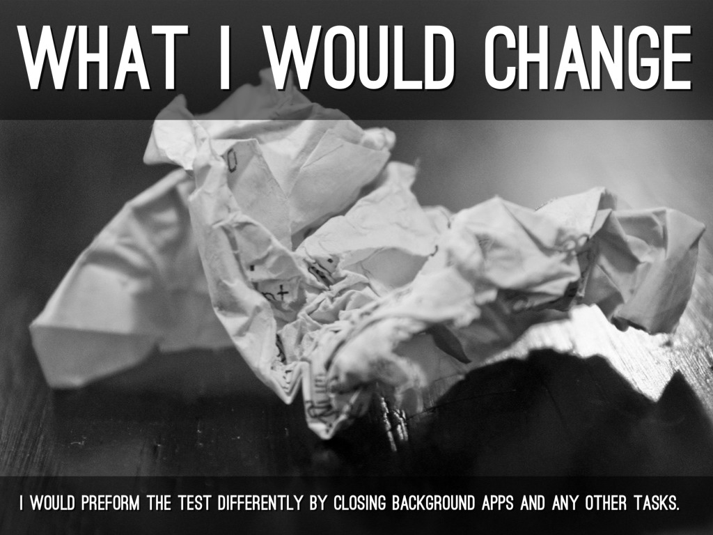 I WOULD PREFORM THE TEST DIFFERENTLY BY CLOSING BACKGROUND APPS AND ANY OTHER TASKS.