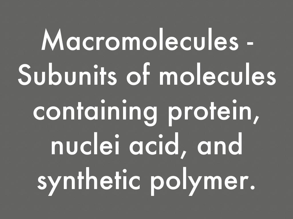 Subunits of molecules containing protein, nuclei acid, and synthetic polymer.