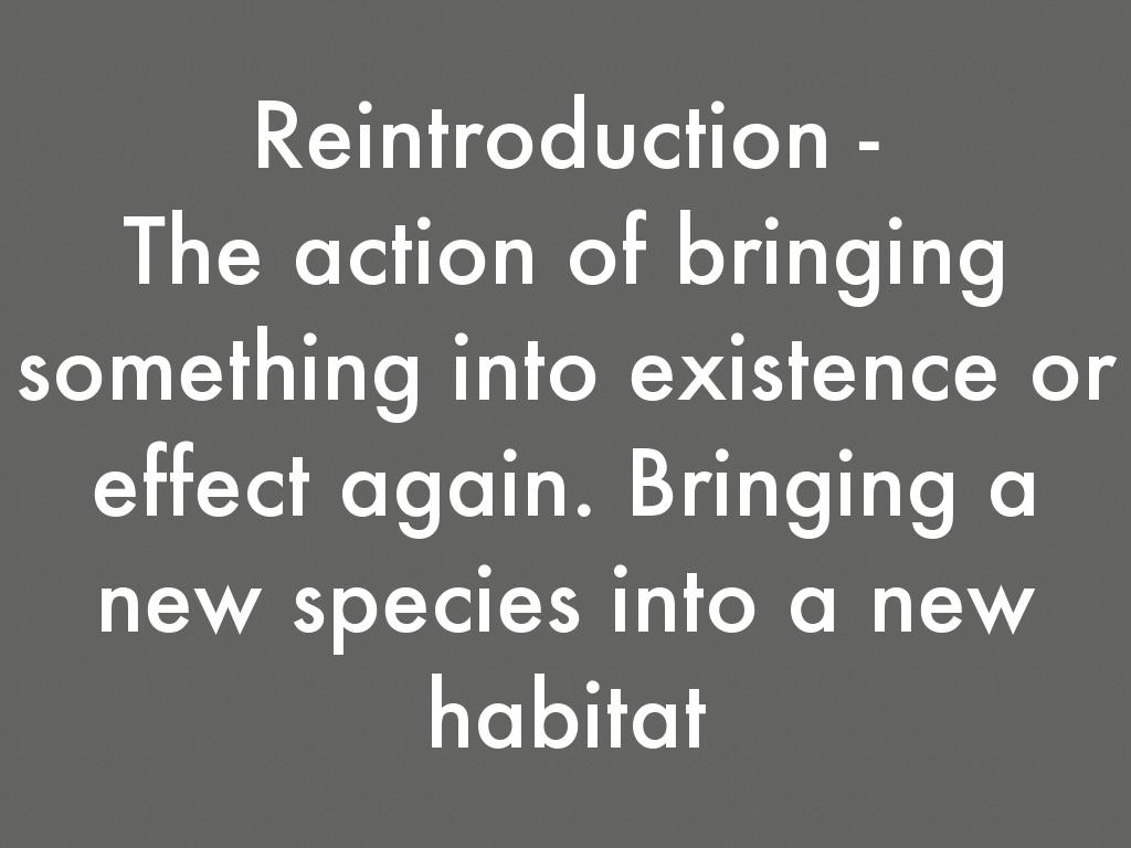 The action of bringing something into existence or effect again. Bringing a new species into a new habitat
