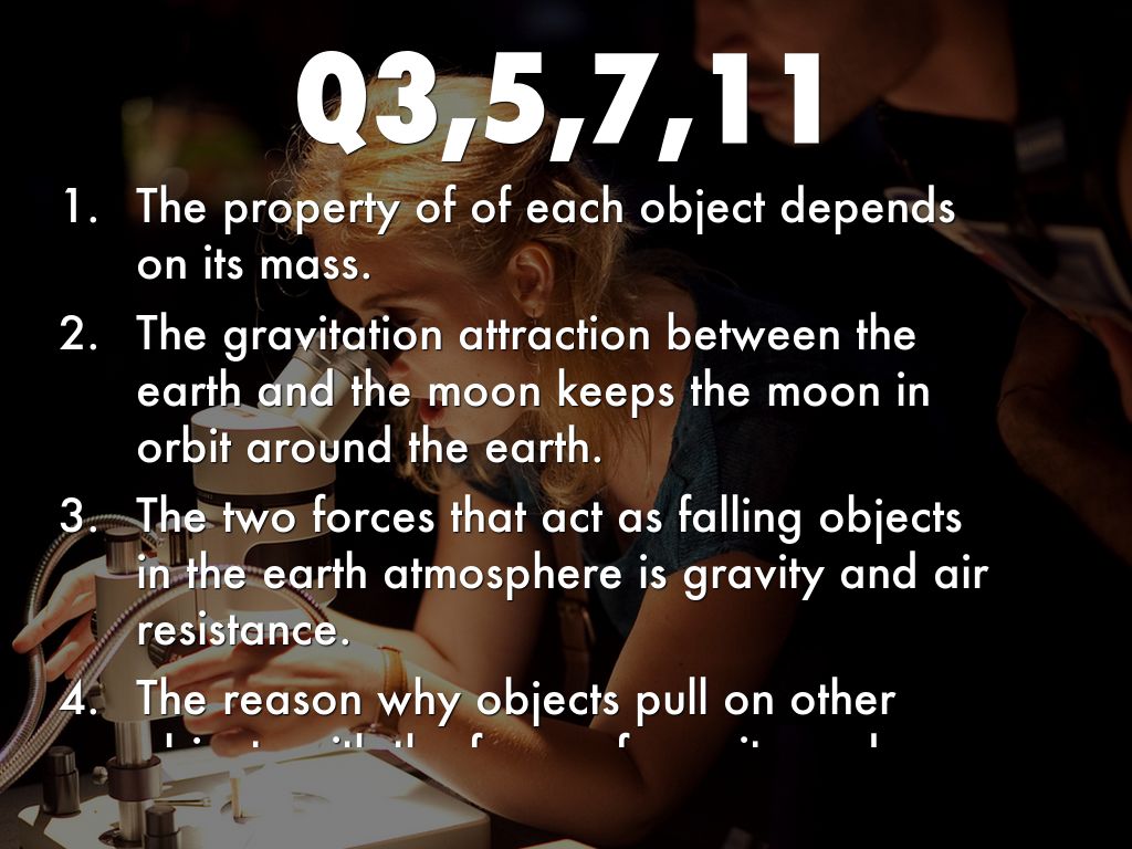 The two forces that act as falling objects in the earth atmosphere is gravity and air resistance.