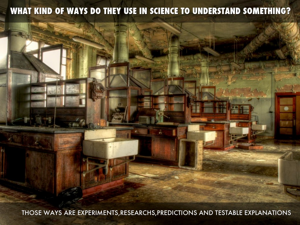 THOSE WAYS ARE EXPERIMENTS,RESEARCHS,PREDICTIONS AND TESTABLE EXPLANATIONS