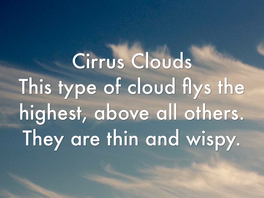 This type of cloud flys the highest, above all others. They are thin and wispy.