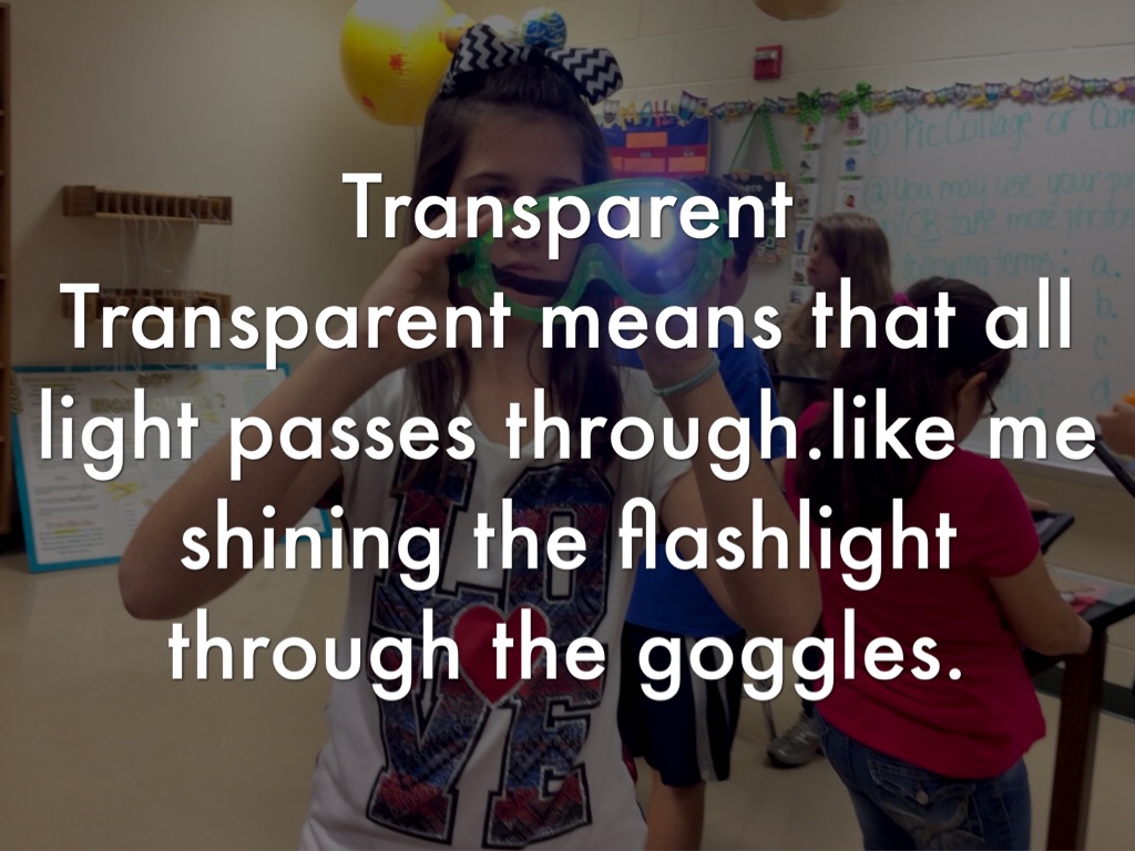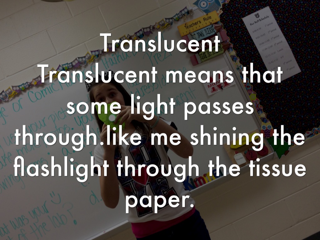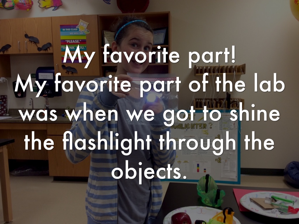 My favorite part of the lab was when we got to shine the flashlight through the objects.
