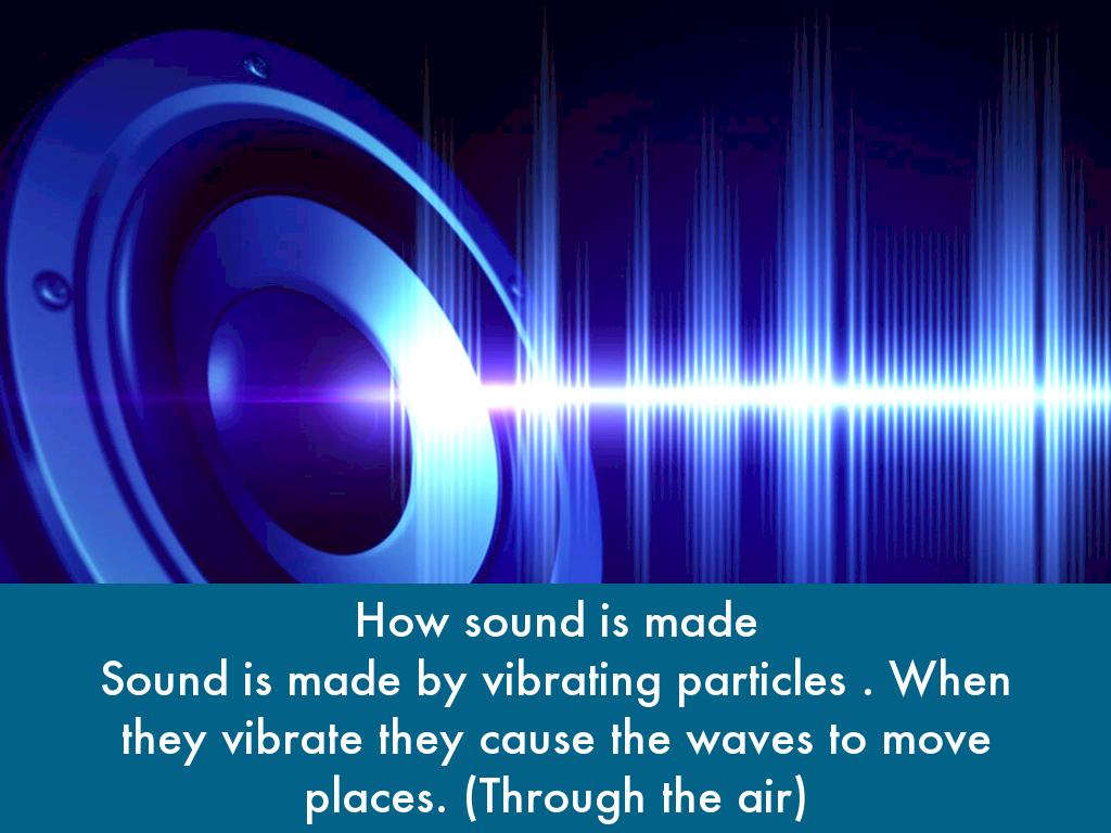 Sound is made by vibrating particles . When they vibrate they cause the waves to move places. (Through the air)