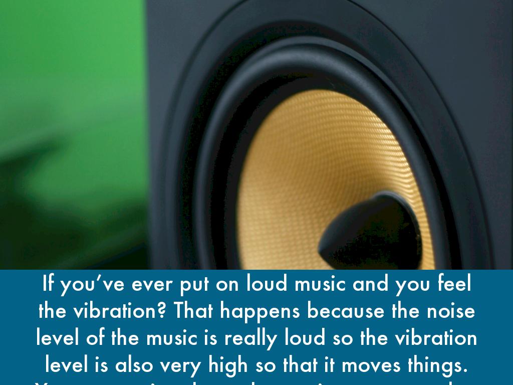 If you’ve ever put on loud music and you feel the vibration? That happens because the noise level of the music is really loud so the vibration level is also very high so that it moves things. You can try it at home by turning on a speaker on a table then making the music really loud. (Only do it for a short period of time or else your ears will be damaged)