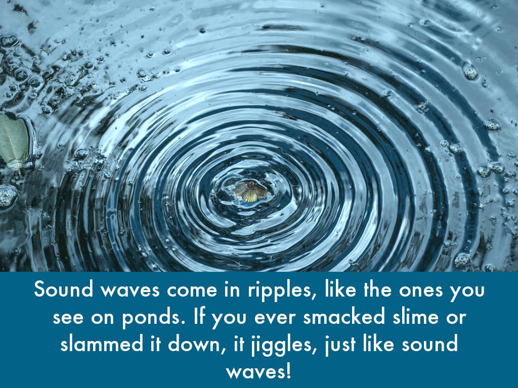 Sound waves come in ripples, like the ones you see on ponds. If you ever smacked slime or slammed it down, it jiggles, just like sound waves!