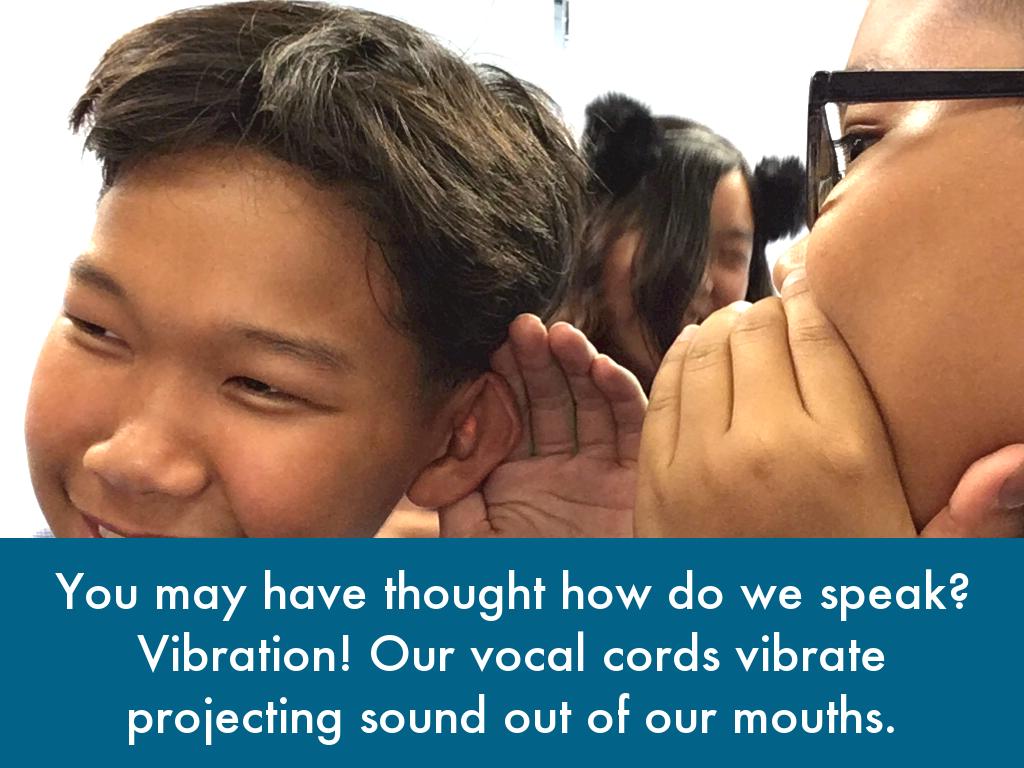 You may have thought how do we speak? Vibration! Our vocal cords vibrate projecting sound out of our mouths.