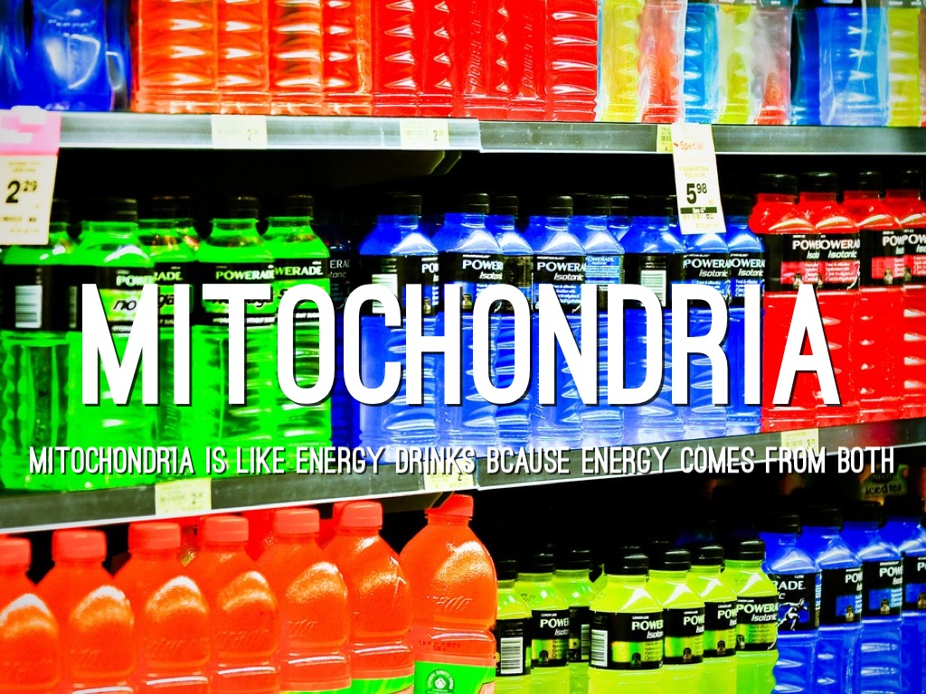 MITOCHONDRIA IS LIKE ENERGY DRINKS BCAUSE ENERGY COMES FROM BOTH