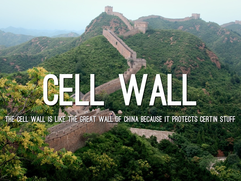 THE CELL WALL IS LIKE THE GREAT WALL OF CHINA BECAUSE IT PROTECTS CERTIN STUFF