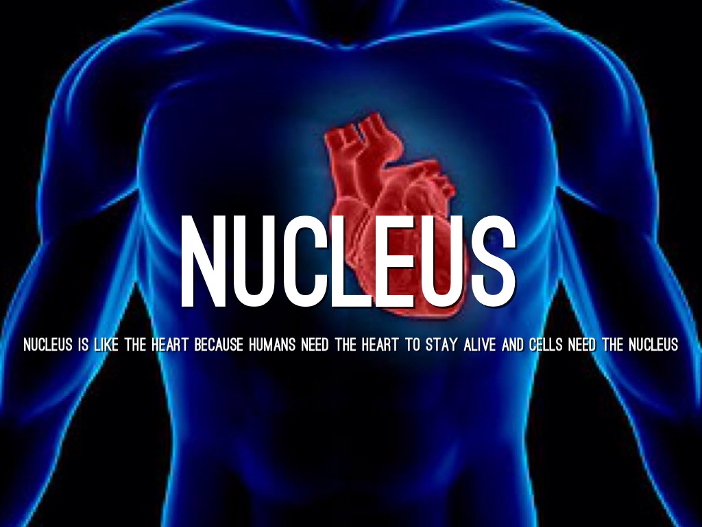 NUCLEUS IS LIKE THE HEART BECAUSE HUMANS NEED THE HEART TO STAY ALIVE AND CELLS NEED THE NUCLEUS