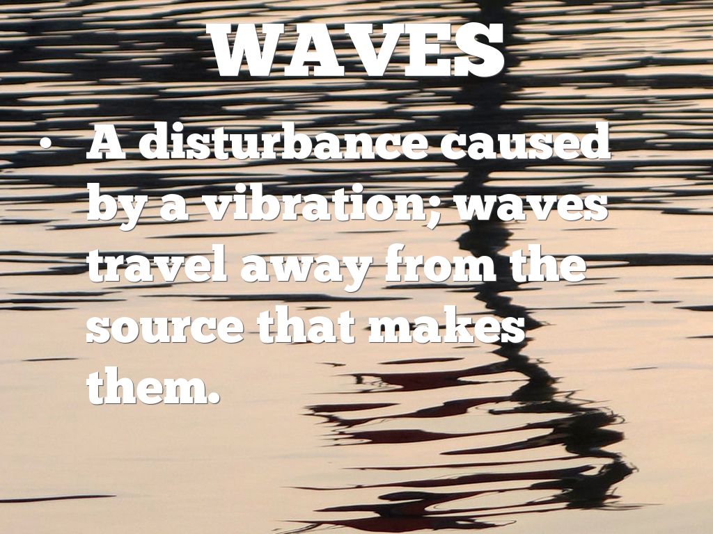 A disturbance caused by a vibration; waves travel away from the source that makes them.