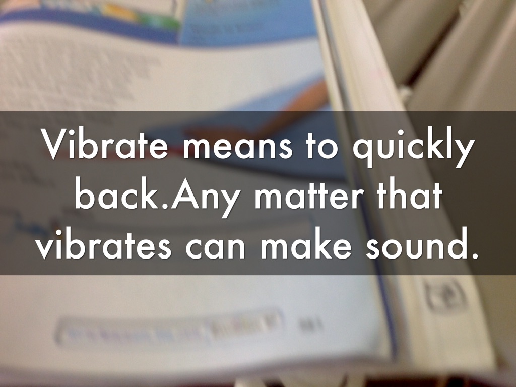 Vibrate means to quickly back.Any matter that vibrates can make sound.