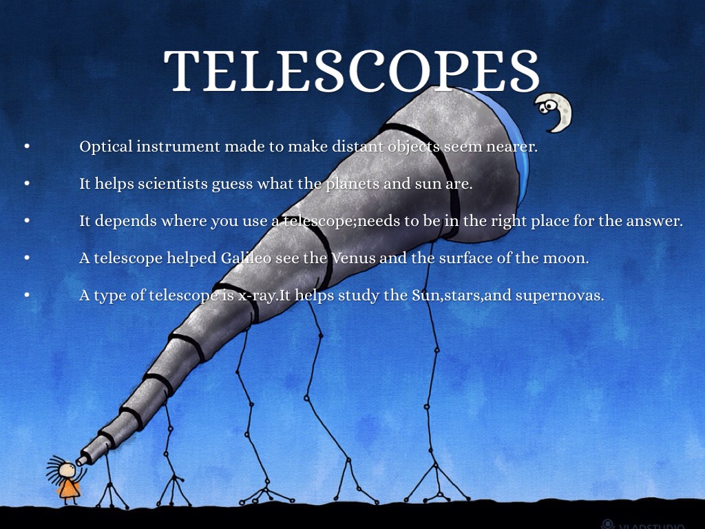 A telescope helped Galileo see the Venus and the surface of the moon.
