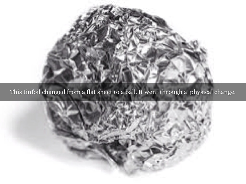 This tinfoil changed from a flat sheet to a ball. It went through a physical change.