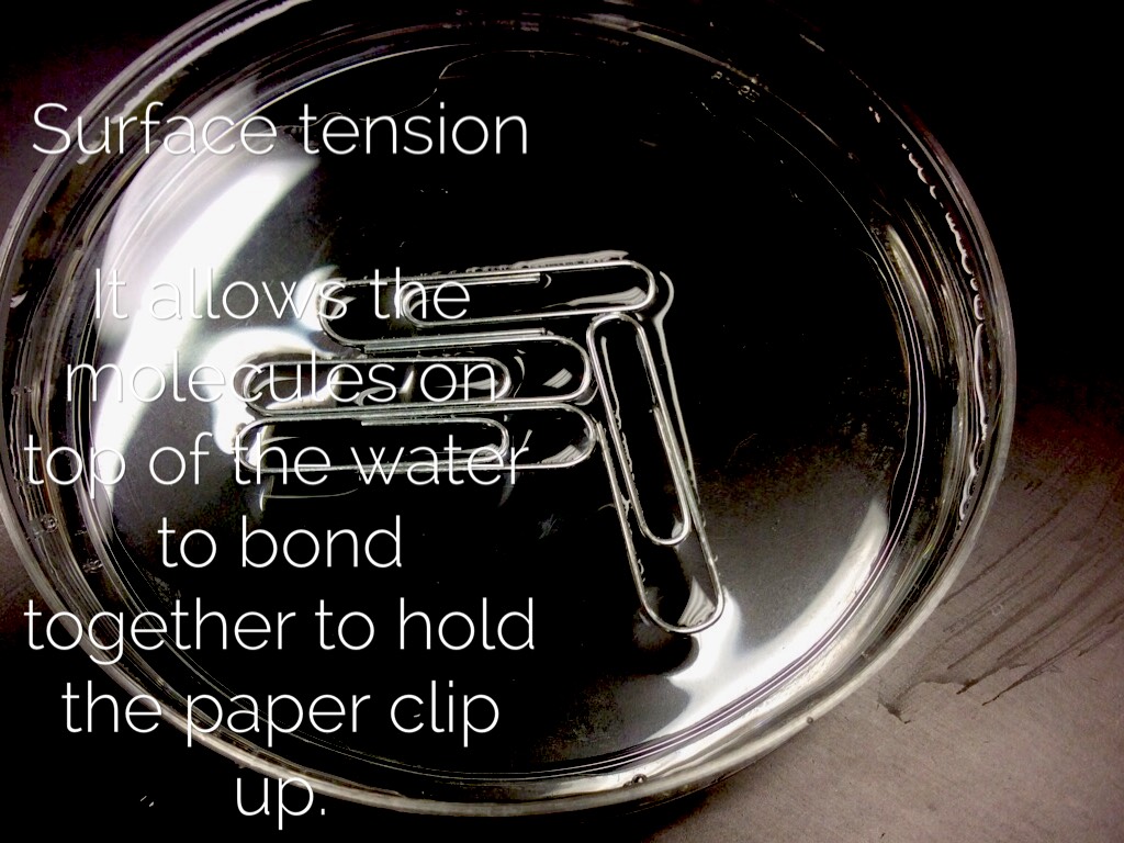 It allows the molecules on top of the water to bond together to hold the paper clip up.