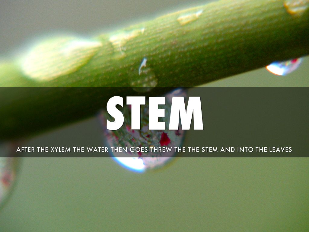 AFTER THE XYLEM THE WATER THEN GOES THREW THE THE STEM AND INTO THE LEAVES