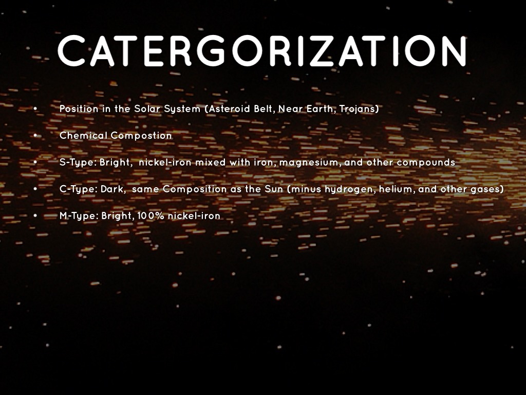 C-Type: Dark, same Composition as the Sun (minus hydrogen, helium, and other gases)