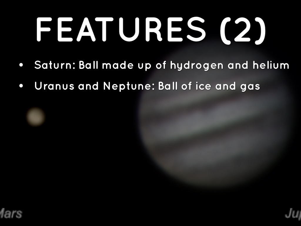 Gas Giants/Jovian: Jupiter, Saturn, Uranus, Neptune