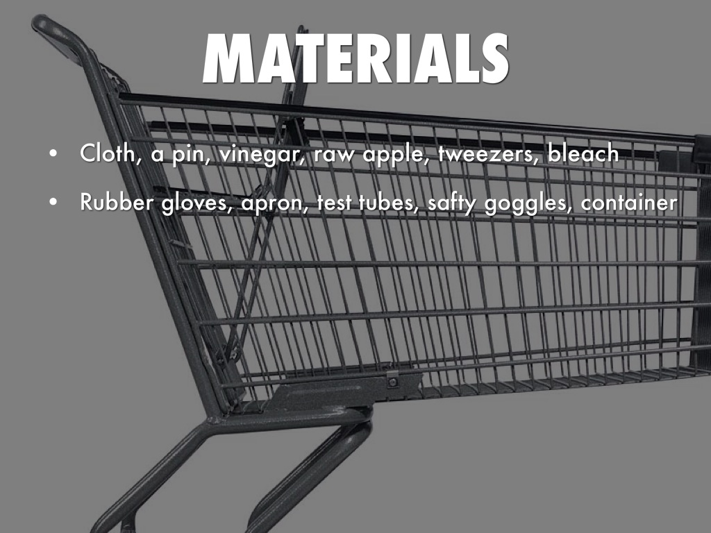 - Cloth, a pin, vinegar, raw apple, tweezers, bleach