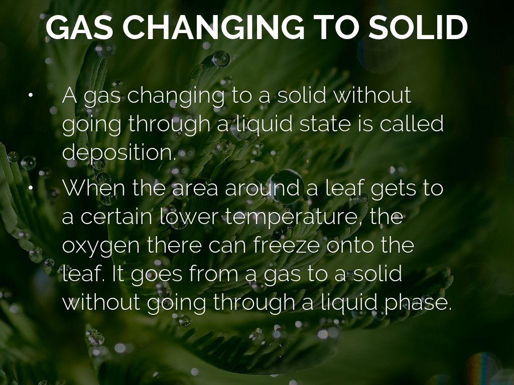 When the area around a leaf gets to a certain lower temperature, the oxygen there can freeze onto the leaf. It goes from a gas to a solid without going through a liquid phase.