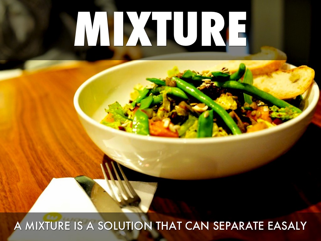 A MIXTURE IS A SOLUTION THAT CAN SEPARATE EASALY