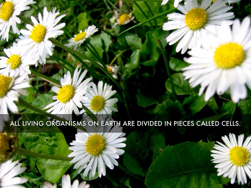 ALL LIVING ORGANISMS ON EARTH ARE DIVIDED IN PIECES CALLED CELLS.