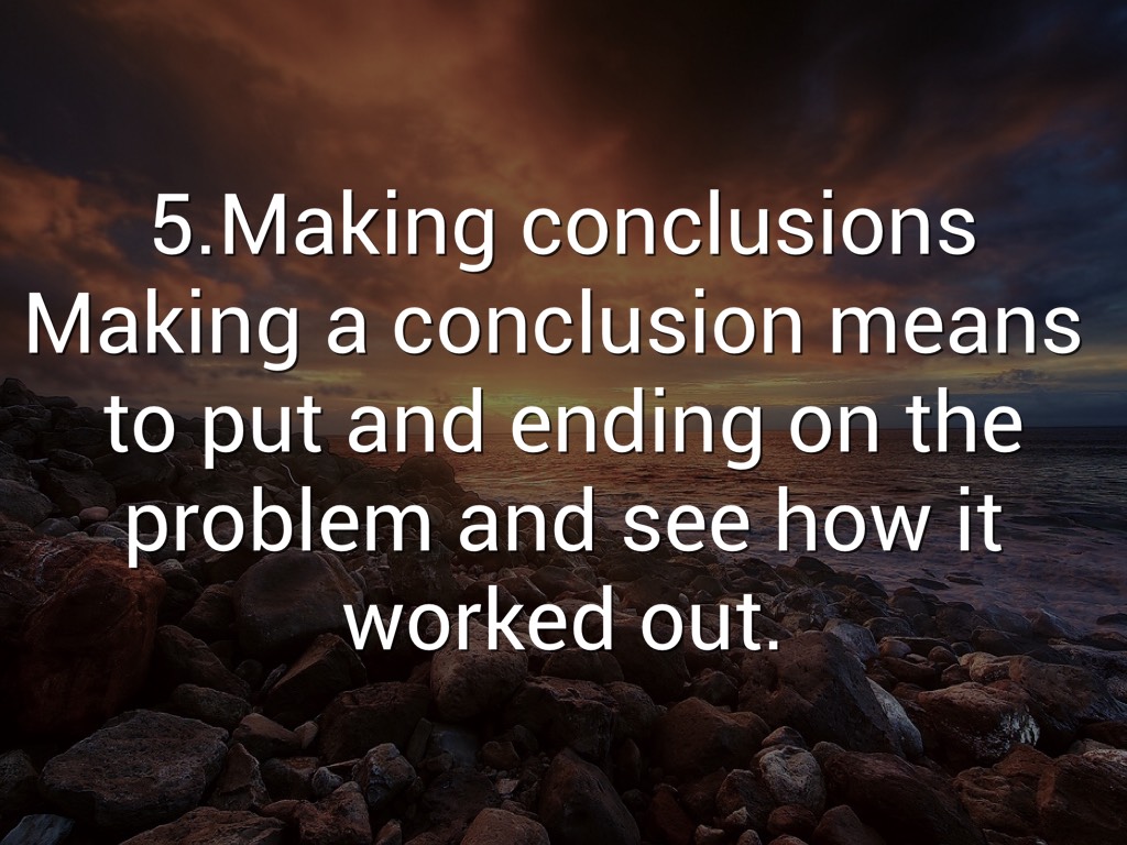 Making a conclusion means to put and ending on the problem and see how it worked out.