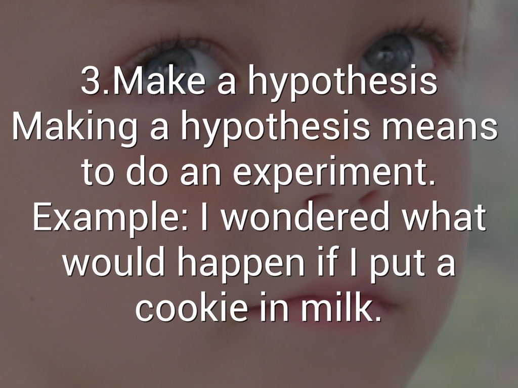 Making a hypothesis means to do an experiment. Example: I wondered what would happen if I put a cookie in milk.