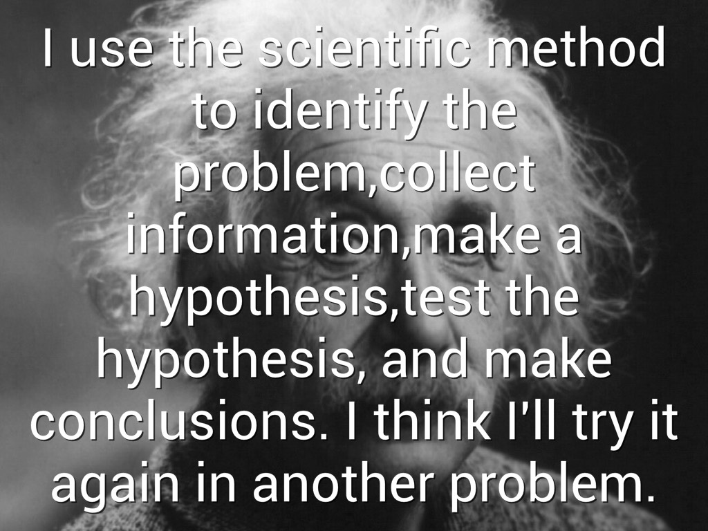 I use the scientific method to identify the problem,collect information,make a hypothesis,test the hypothesis, and make conclusions. I think I'll try it again in another problem.