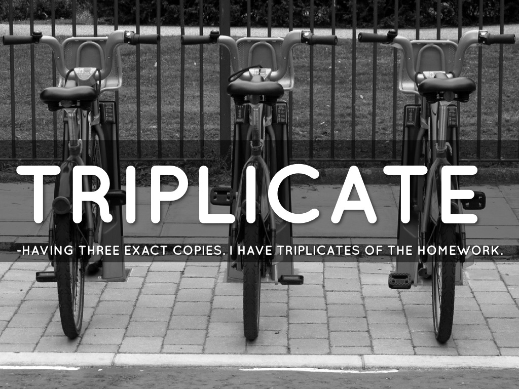 -HAVING THREE EXACT COPIES. I HAVE TRIPLICATES OF THE HOMEWORK.