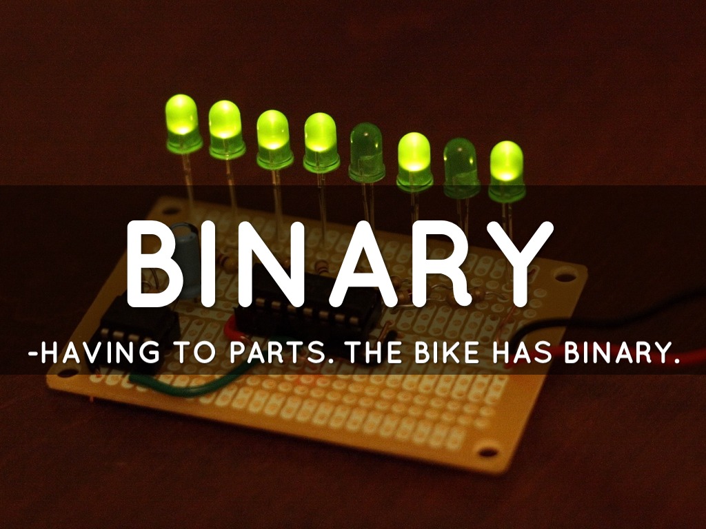 -HAVING TO PARTS. THE BIKE HAS BINARY.