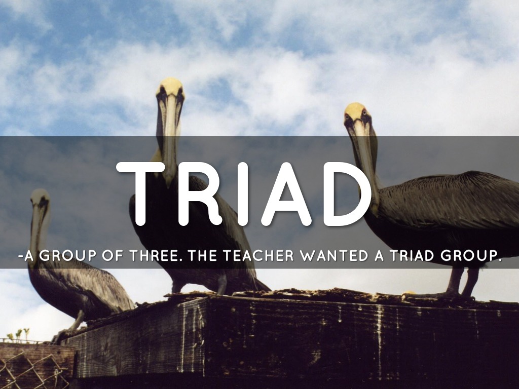 -A GROUP OF THREE. THE TEACHER WANTED A TRIAD GROUP.