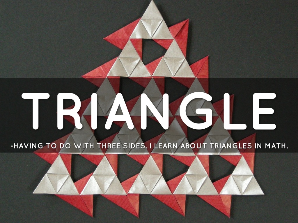 -HAVING TO DO WITH THREE SIDES. I LEARN ABOUT TRIANGLES IN MATH.