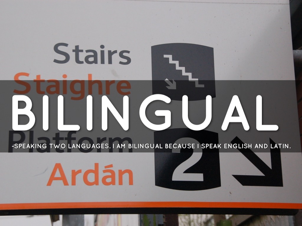 -SPEAKING TWO LANGUAGES. I AM BILINGUAL BECAUSE I SPEAK ENGLISH AND LATIN.