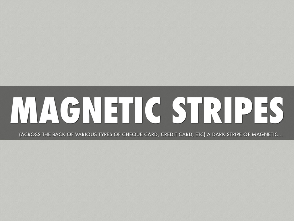 (across the back of various types of cheque card, credit card, etc) a dark stripe of magnetic material consisting of several tracks onto which information may be coded and which may be read or written to electronically