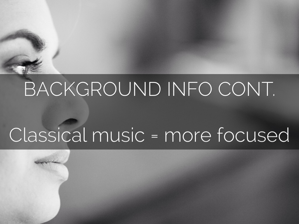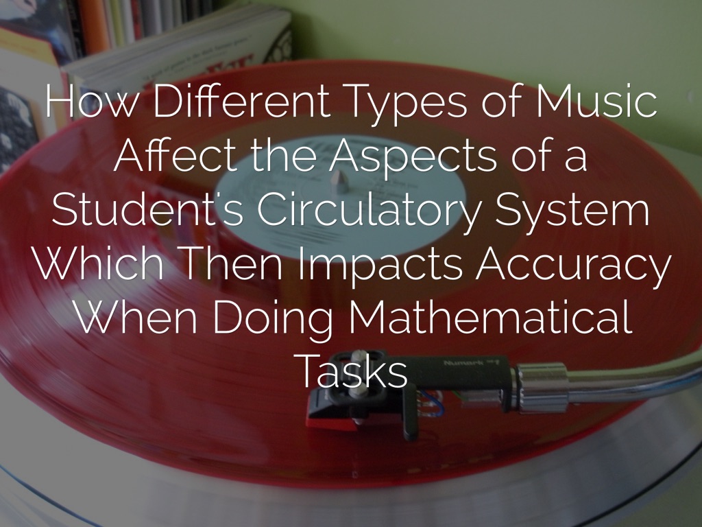 Purpose: To see how people are affected by music when performing academic tasks, and to see which types of music are ideal for performing academic tasks.